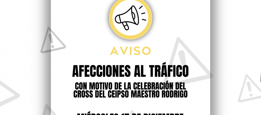 Con motivo de la celebración del Cross Escolar del colegio Maestro Rodrigo, el miércoles 17 de diciembre, se producirán cortes y restricciones de tráfico.