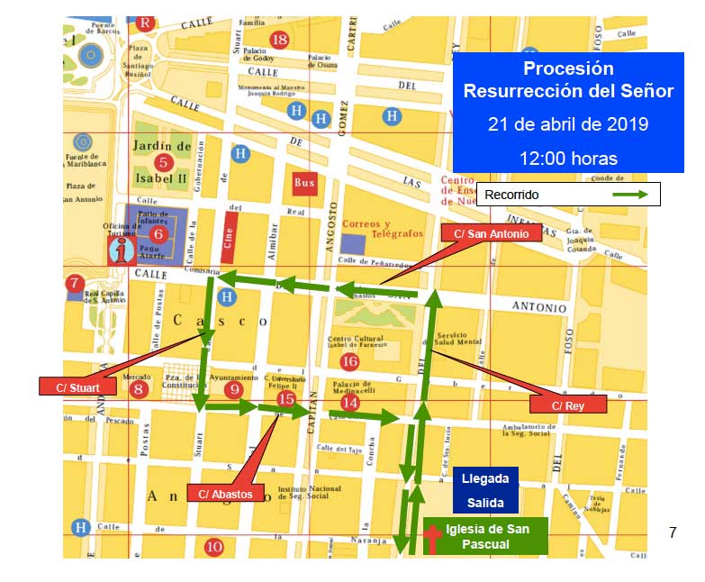 Recorrido 1: Iglesia de San Pascual, calle del Rey hasta San Antonio, donde se une al siguiente recorrido.