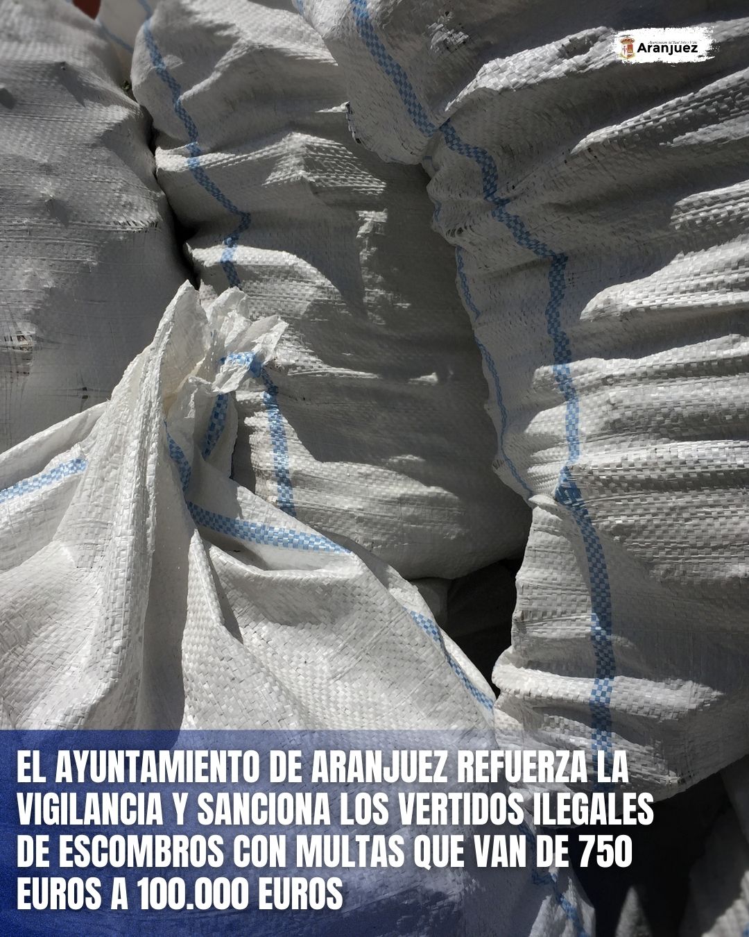 EL AYUNTAMIENTO DE ARANJUEZ REFUERZA LA VIGILANCIA Y SANCIONA LOS VERTIDOS ILEGALES DE ESCOMBROS CON MULTAS QUE VAN DE 750 EUROS A 100.000 EUROS   ⁠ ⁠En la última semana…