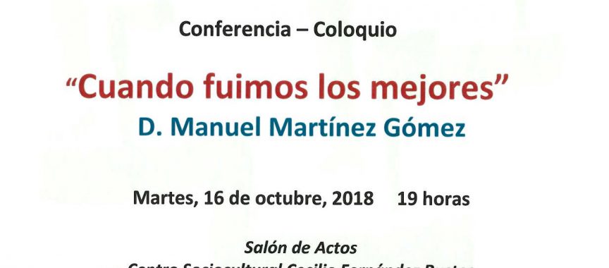 El Aula Abierta de la Universidad Popular de Aranjuez regresa mañana martes a las 19h. al Centro Sociocultural ‘Cecilio Fernández Bustos’ con la conferencia titulada ‘Cuando fuimos los mejores’, que correrá a cargo de Manuel Martínez Gómez.