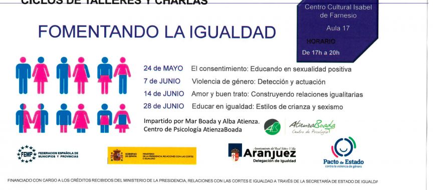 La Delegación de Igualdad del Ayuntamiento de Aranjuez ha presentado hoy el ciclo de charlas y talleres ‘Fomentando la igualdad’, que dan comienzo este viernes entre las 17 y las 20 horas con la charla ‘El consentimiento: educación en sexualidad positiva’ en el Aula 17 del Centro Cultural Isabel de Farnesio.