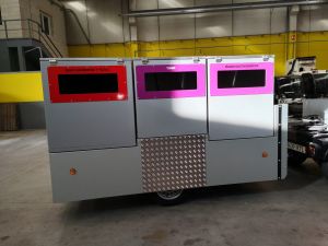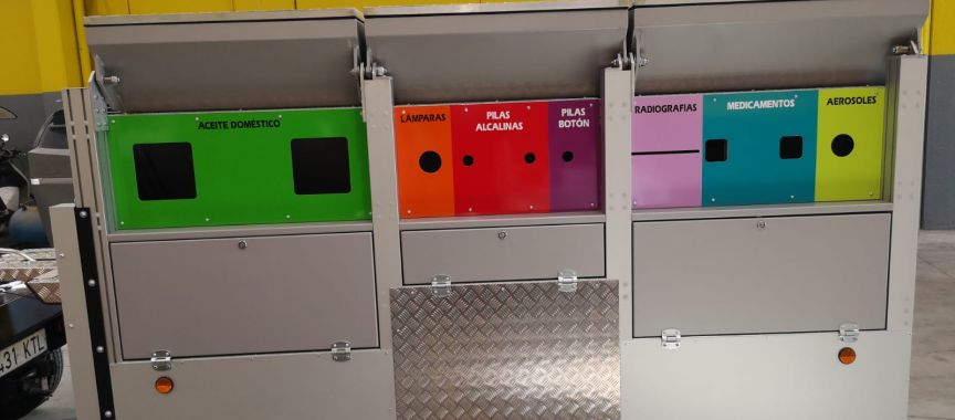 Por su parte, el remolque de separación de residuos está dotado de compartimentos para poder separar los diferentes residuos que pueden depositarse en él de forma cómoda y que son los siguientes: aceite doméstico, lámparas, pilas alcalinas, pilas de botón, radiografías, medicamentos, aerosoles, equipos informáticos y de telecomunicaciones, tóneres y pequeños electrodomésticos.