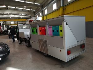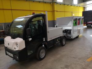 Se trata de un vehículo articulado compuesto por una cabeza tractora y un remolque de separación de residuos. La cabeza tractora es un vehículo totalmente eléctrico, dotado de gran autonomía y muy silencioso y se utiliza para el transporte del remolque desde la base central hasta el punto de la ciudad en que se ubica a diario para el uso de los vecinos.