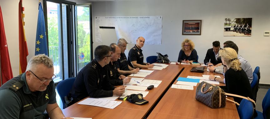 La alcaldesa de Aranjuez, Cristina Moreno, ha presidido esta mañana la reunión de la Junta Local de Seguridad en la que se ha aprobado el Plan Integral de Tráfico y Seguridad de las próximas Fiestas de San Fernando.
