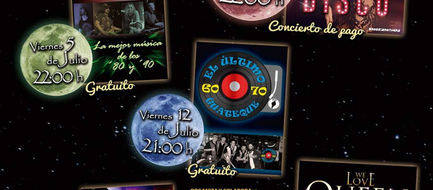 Para el viernes 19 de julio está prevista la actuación de Luis Muñoz, que rendirá tributo a artistas como Camilo Sesto, Raphael o Julio Iglesias, acompañado de una banda compuesta por 8 músicos en directo.