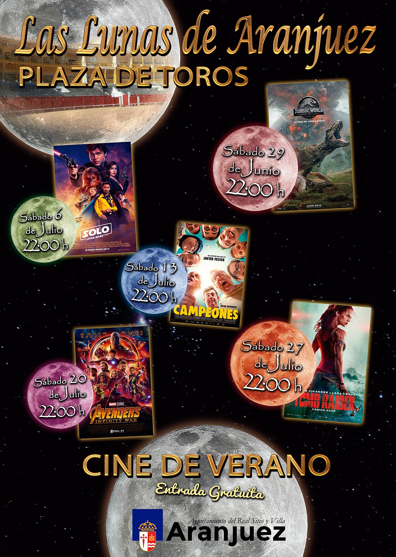 Las noches de los sábados están reservadas para el Cine de Verano en ‘Las Lunas de Aranjuez’, que ha programado la proyección de las siguientes películas en la Plaza de Toros, todas ellas con entrada gratuita: