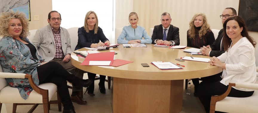 La alcaldesa de Aranjuez, Cristina Moreno, junto a los regidores y regidoras de Ciempozuelos, Valdemoro, Pinto y Getafe, han celebrado esta mañana una reunión con la presidenta de la Comunidad de Madrid, Cristina Cifuentes, en la sede del Gobierno regional, en la que le han trasladado las distintas reivindicaciones de los municipios a los que da servicio la línea C-3 de Cercanías.