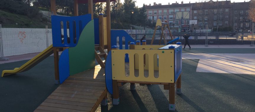 Además, el columpio nido está especialmente diseñado para varios niños y para niños con necesidades especiales. Por otro lado, el juego de rayuela dibujado en el caucho y los puntos de salto son juegos que ayudan al desarrollo motor de los niños.