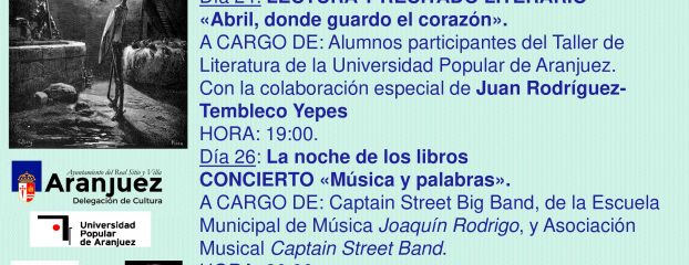 Aranjuez se suma este viernes a La Noche de los Libros 2019 de la Comunidad de Madrid con el concierto “Música y Palabras”, a cargo de...
