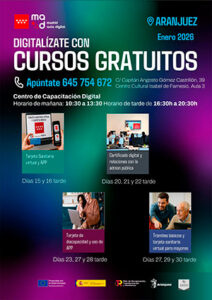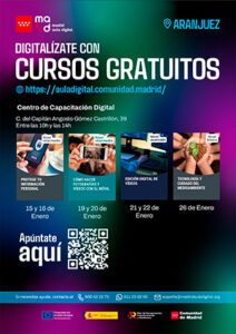 El Centro de Capacitación Digital, ubicado en el aula 3 del Centro Cultural Isabel de Farnesio, mediante los cursos formativos, pretende que los ciudadanos que encuentren alguna dificultad para manejarse con las nuevas tecnologías reciban los conocimientos necesarios para derribar esa barrera y beneficiarse de su uso. Por ello, se podrán llevar a cabo cursos basados, por ejemplo, en el uso de los smartphones, manejo de la banca online, etc., Pero también se pretende mejorar las capacidades de quienes necesiten ampliar sus conocimientos, con cursos como robótica, impresión 3D, programación, etc.