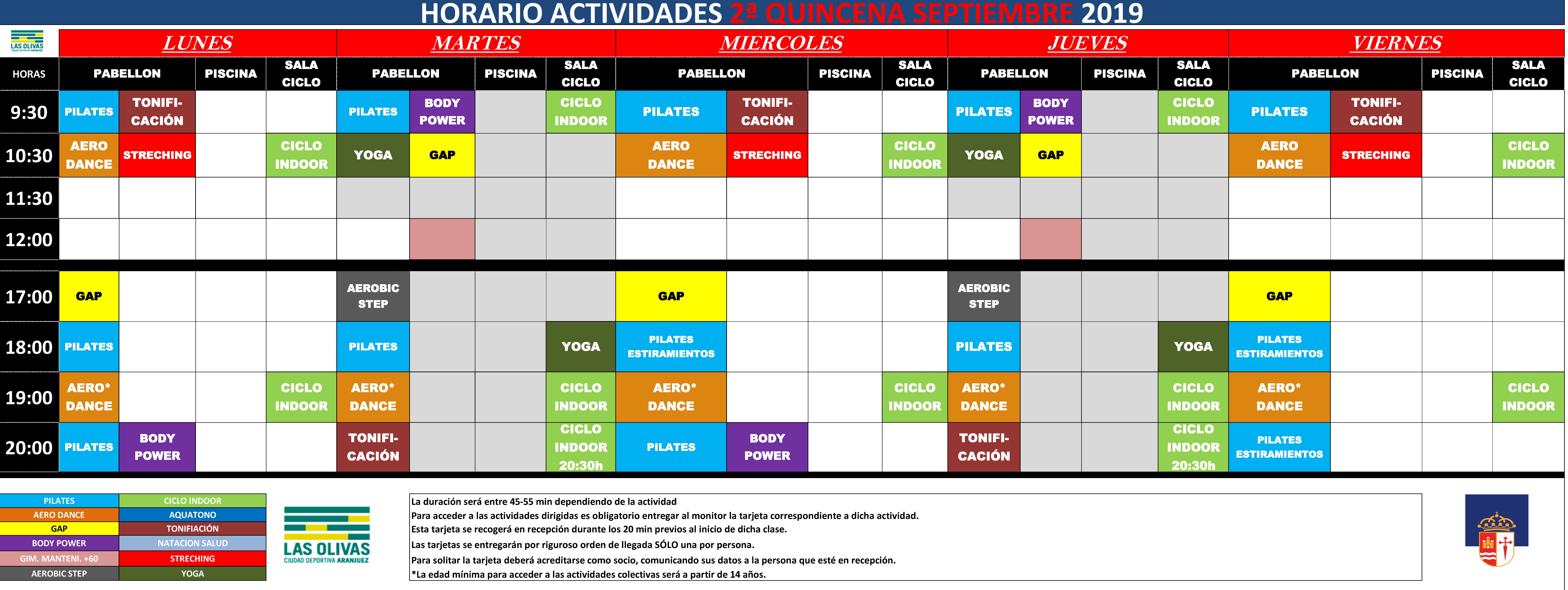 Ciudad deportiva de «las Olivas»: Horario de actividades planificado para la 2ª quincena del mes de septiembre: