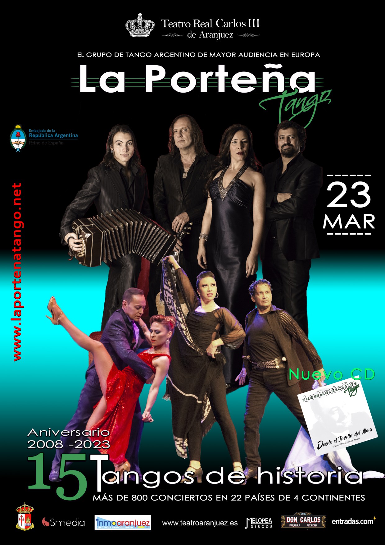 La Porteña Tango en su 15 Aniversario, regresa nuevamente al Teatro Carlos III de Aranjuez presentando un concierto especial festejando su gran trayectoria y presentando su nuevo álbum “Desde el jardín del Alma” Un homenaje al gran poeta del tango Homero Manzi.