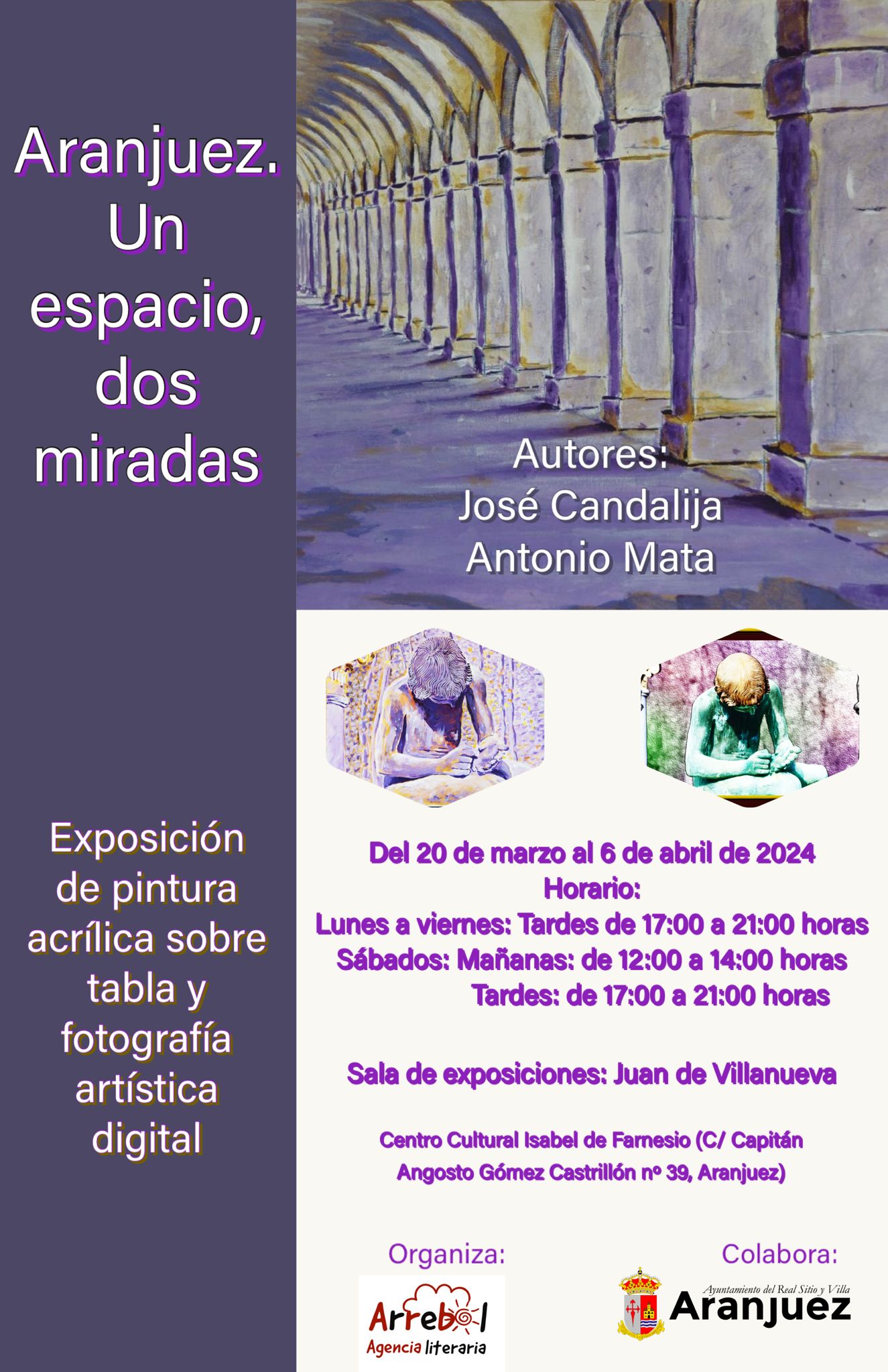 El pintor José Candalija, con técnica pictórica de acrílico sobre tabla, y el escritor y fotógrafo Antonio Mata, con técnica de tratamiento digital de la imagen, nos presentan estas dos miradas distintas sobre el espacio original y las emociones que provoca.