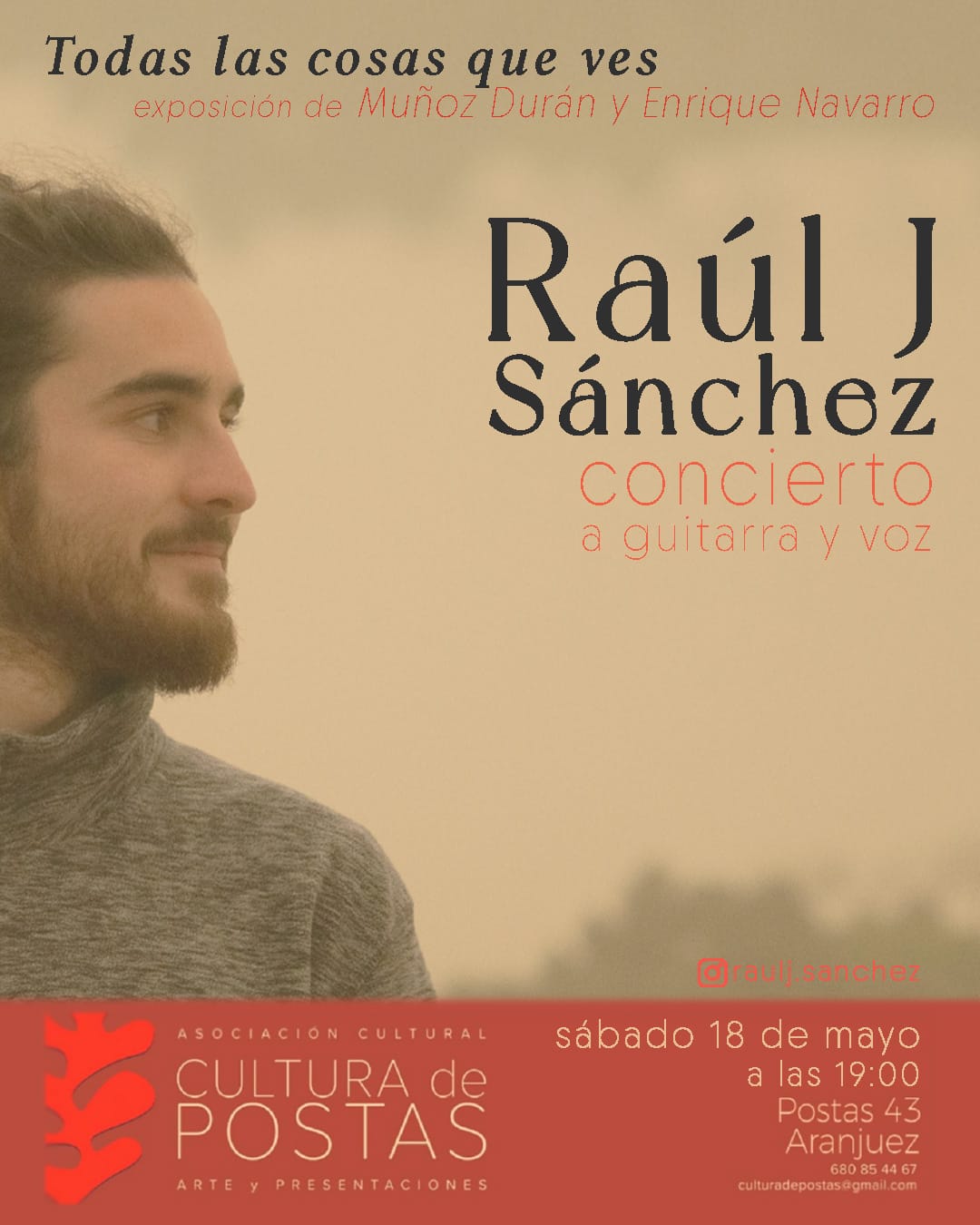 Raúl J. Sánchez es un cantautor de carácter intimista y aire naturalista que ofrecerá un concierto a guitarra y voz en el ámbito de la exposición “Todas las cosas que ves”.