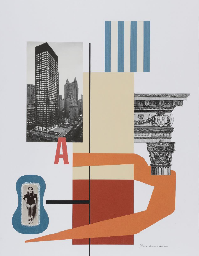 Formalmente, las obras de Félix Andrada tienden al pequeño formato: dibujos, estampas serigráficas o digitales y collages. Presentan distintas imágenes y formas juntas, fragmentos sin relación aparente tratados como elementos constructivos de una estructura superior, dispuestos sobre un fondo neutro. Incluyen rostros, edificios, figuras humanas, dispositivos mecánicos, tipografía, reproducciones artísticas, textos y formas planas sencillas. Constituyen en conjunto un particular archivo de imágenes, una especie de atlas mnemosyne, que rehúye articular un mensaje explícito y que podrían presentarse como las páginas sueltas de una memoria personal de afinidades visuales.