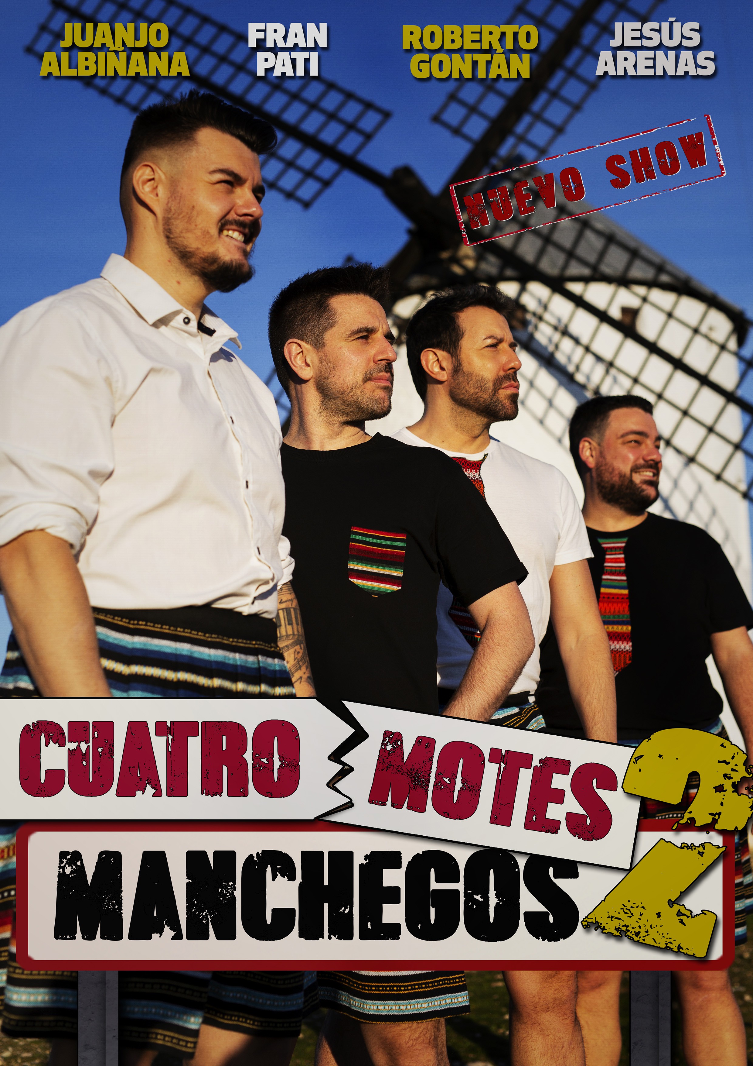 Cuatro motes 2, va desde el humor más blanco y costumbrista al humor más mordaz y vanguardista, con ese toque de lo absurdo típico del humor manchego que tantas alegrías nos ha dado. Pero este show no es solo un espectáculo de monólogos, sus parodias musicales, sus performances y su crítica social hacen de 4 motes manchegos un evento inclasificable y original, en el que durante 2 horas no podrás parar de reír.