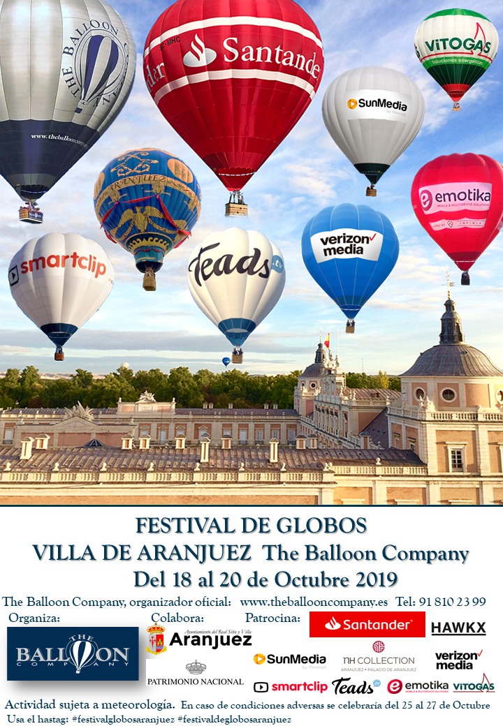 Del 18 al 20 de Octubre los globos aerostáticos vuelven a inundar de magia la ciudad de Aranjuez, en una nueva edición del único Festival de Globos que tiene lugar