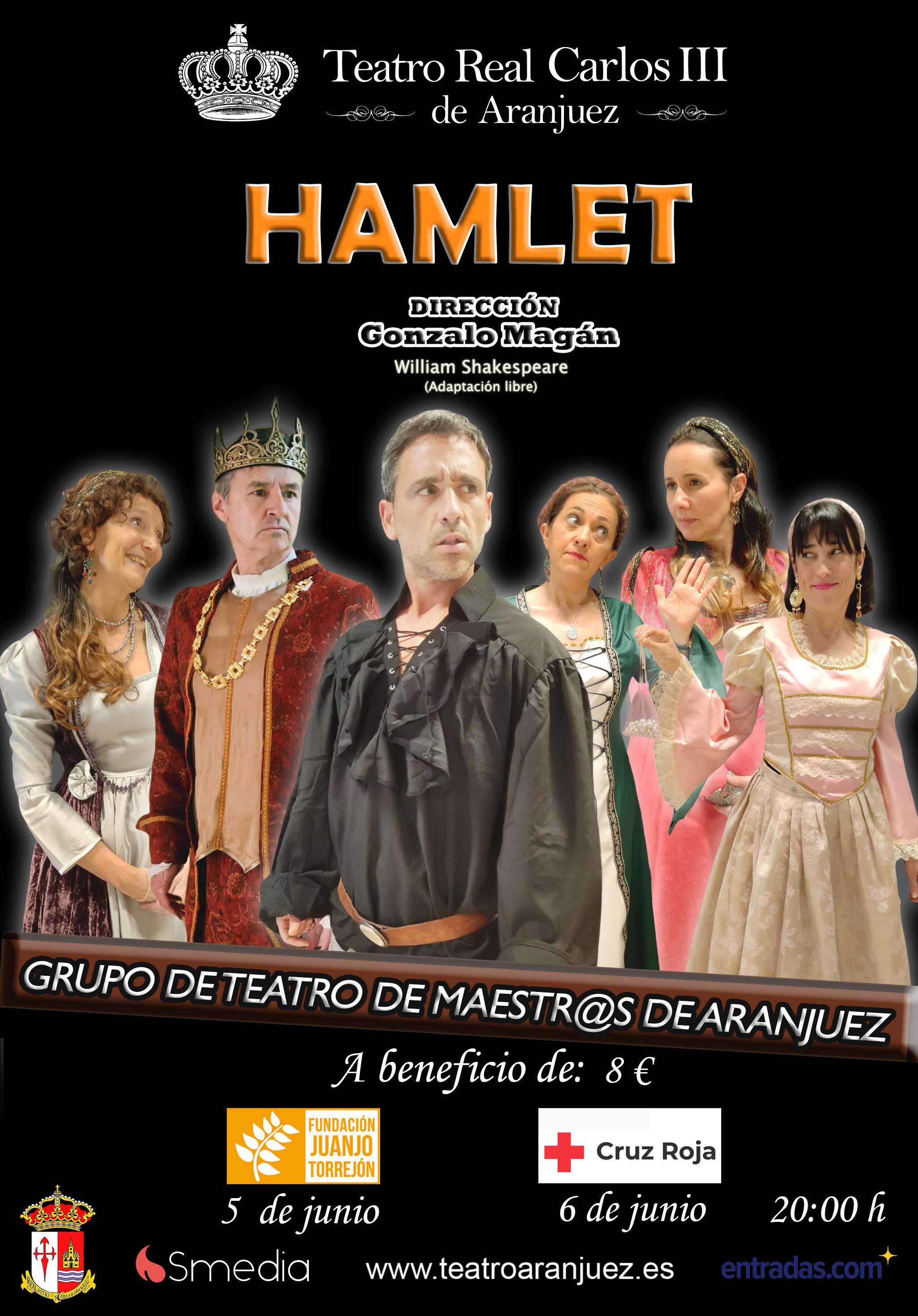 Hamlet, obra maestra por excelencia y la más representada de William Shakespeare dirigida por Gonzalo Magán y el Grupo de teatro de maestr@s de Aranjuez, a beneficio de la Fundación Juanjo Torrejón y Cruz Roja.