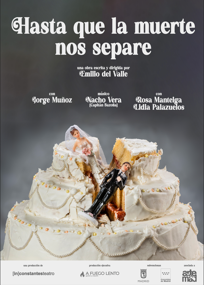 “Hasta que la muerte nos separe” es un monólogo compartido, una comedia muy seria que aborda la ruptura de la pareja desde la reflexión sobre nosotros mismos y el entendimiento del otro. Mediante un juego metateatral, actor y actriz se embarcan en un ejercicio enormemente complicado: el de la empatía. Ambos son acompañados por un músico en escena que aporta un contrapunto cómico a la obra y proporciona el espacio sonoro.