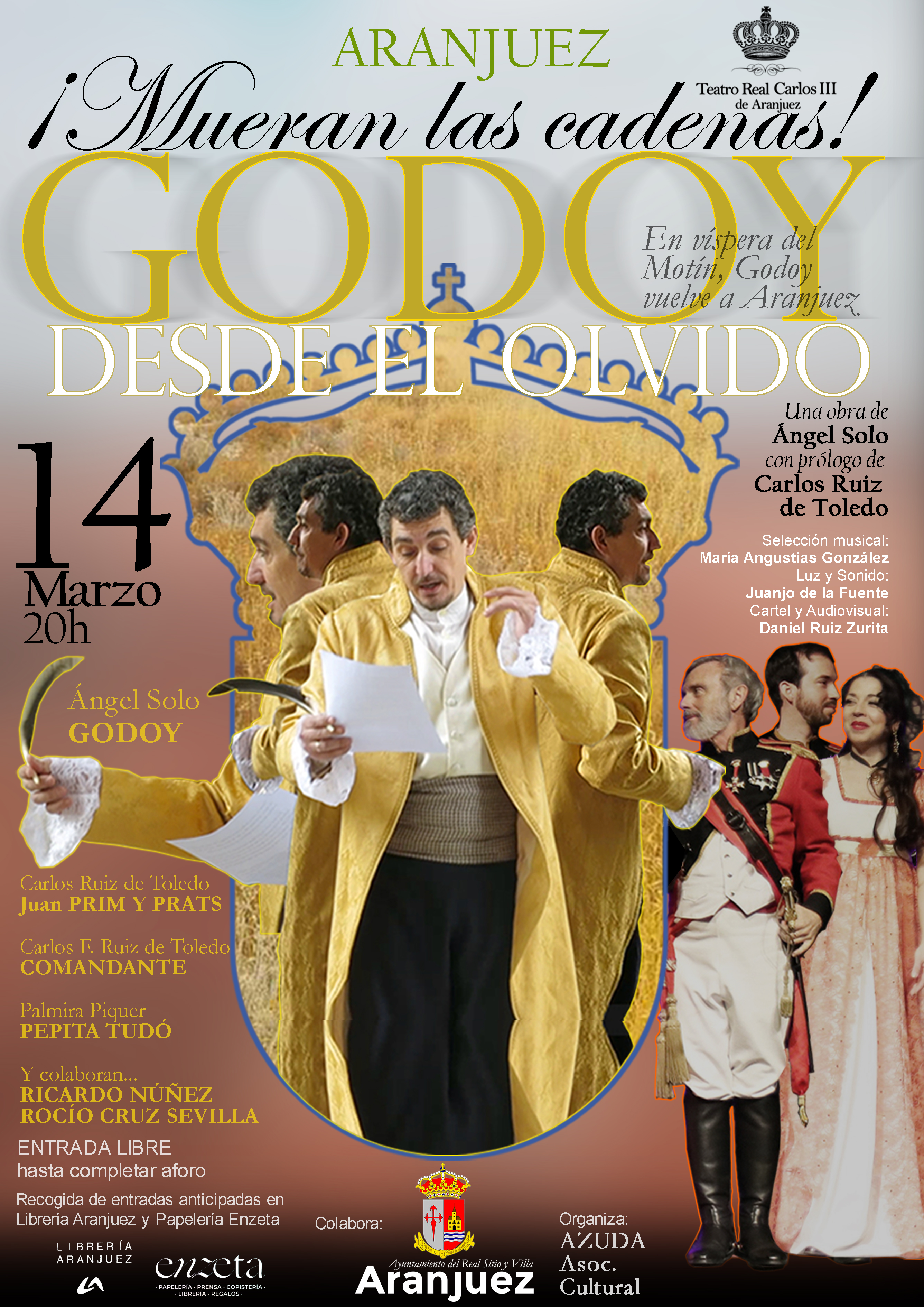 UNA VISIÓN NUEVA, A TENOR DE LOS ÚLTIMOS ESTUDIOS HISTÓRICCOS SOBRE MANUEL DE GODOY, CON UN PROLOGO PROTAGONIZADO POR EL GENERAL PRIM, Y CON LA VOZ DEL ACTOR QUE ENCARNA A GODOY COMO UN PERSONAJE MÁS DE LA REPRESENTACIÓN.