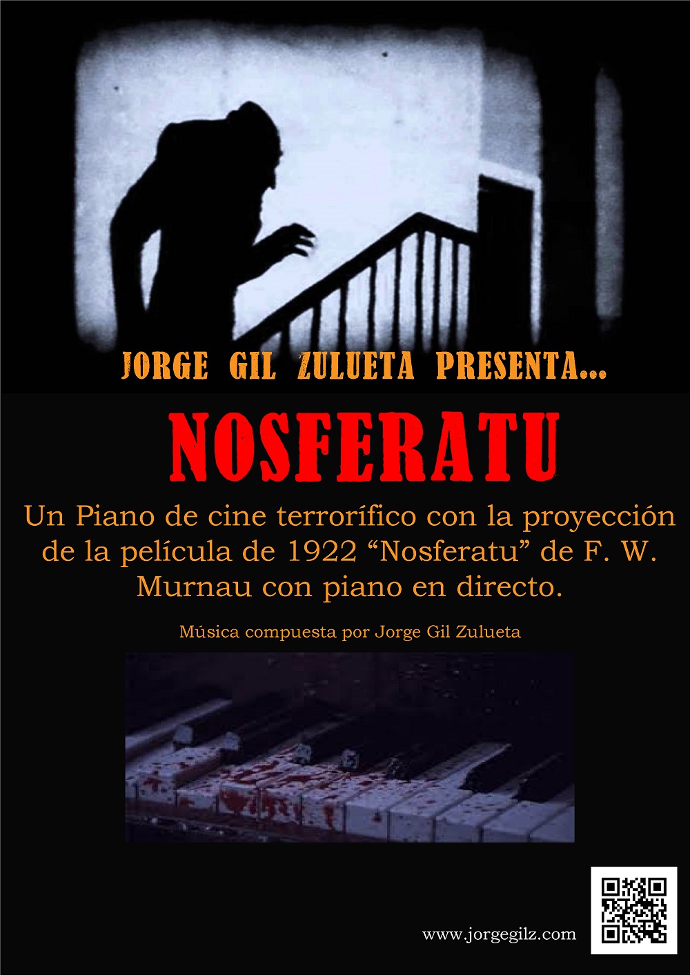 Para el próximo Halloween 2019 llega el cine mudo terrorífico con piano en directo. En Gira el concierto con proyección de “Nosferatu, una sinfonía del horror”, el clásico de Murnau de 1922 con piano en directo a través de composiciones realizadas para la primera película relacionada con la historia original de Bram Stoker, Drácula. Inicialmente no aceptada por la viuda de Bram Stoker, que abrió una demanda, pronto se convirtió en una película de culto.