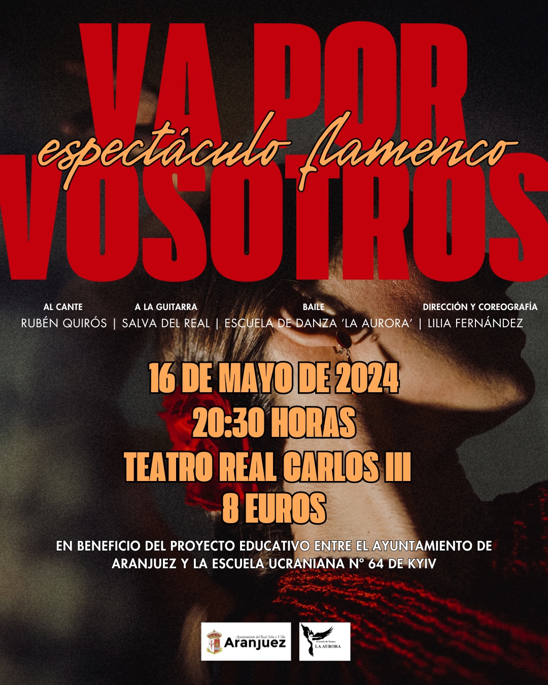 Espectáculo flamenco en beneficio del Proyecto Educativo entre el Ayuntamiento de Aranjuez y la Escuela Ucraniana Nº 64 de Kyiv. Al cante: Rubén Quirós A la guitarra: Salva del Real Baile: Escuela de