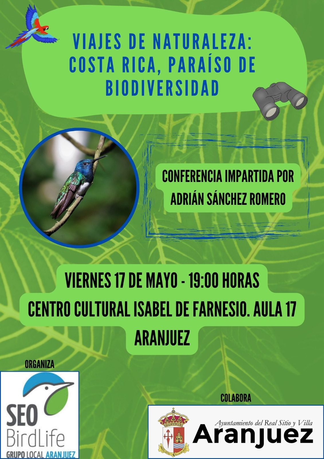 "Viajes de Naturaleza: Costa Rica, un paraíso de biodiversidad" es una conferencia englobada en un ciclo de divulgación sobre medio ambiente con las aves como nexo común. En esta ocasión
